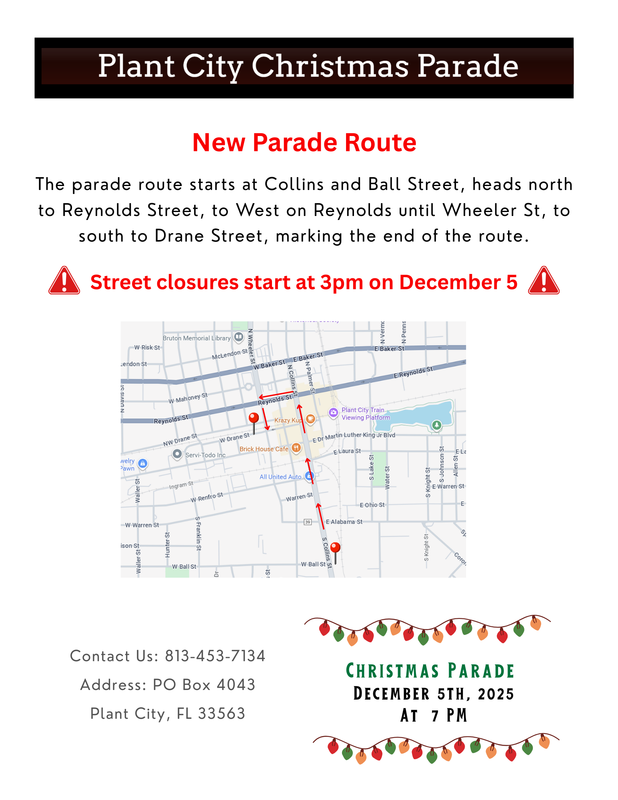 The parade route starts at Collins and Ball Street, heads North to Reynolds Street, to West on Reynolds Street until Wheeler Street then South to Drane Street, marking the end of the Route.Attention: